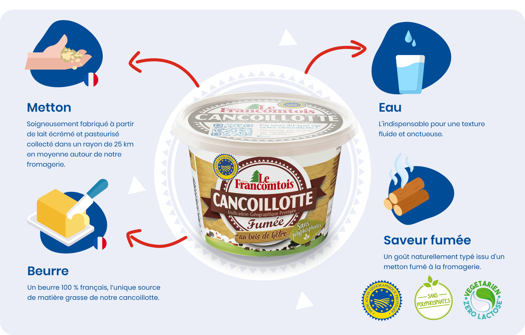 Une texture onctueuse et un goût unique grâce à son metton fumé au bois de hêtre, Le goût franc et comtois qui vous fera fondre de plaisir !