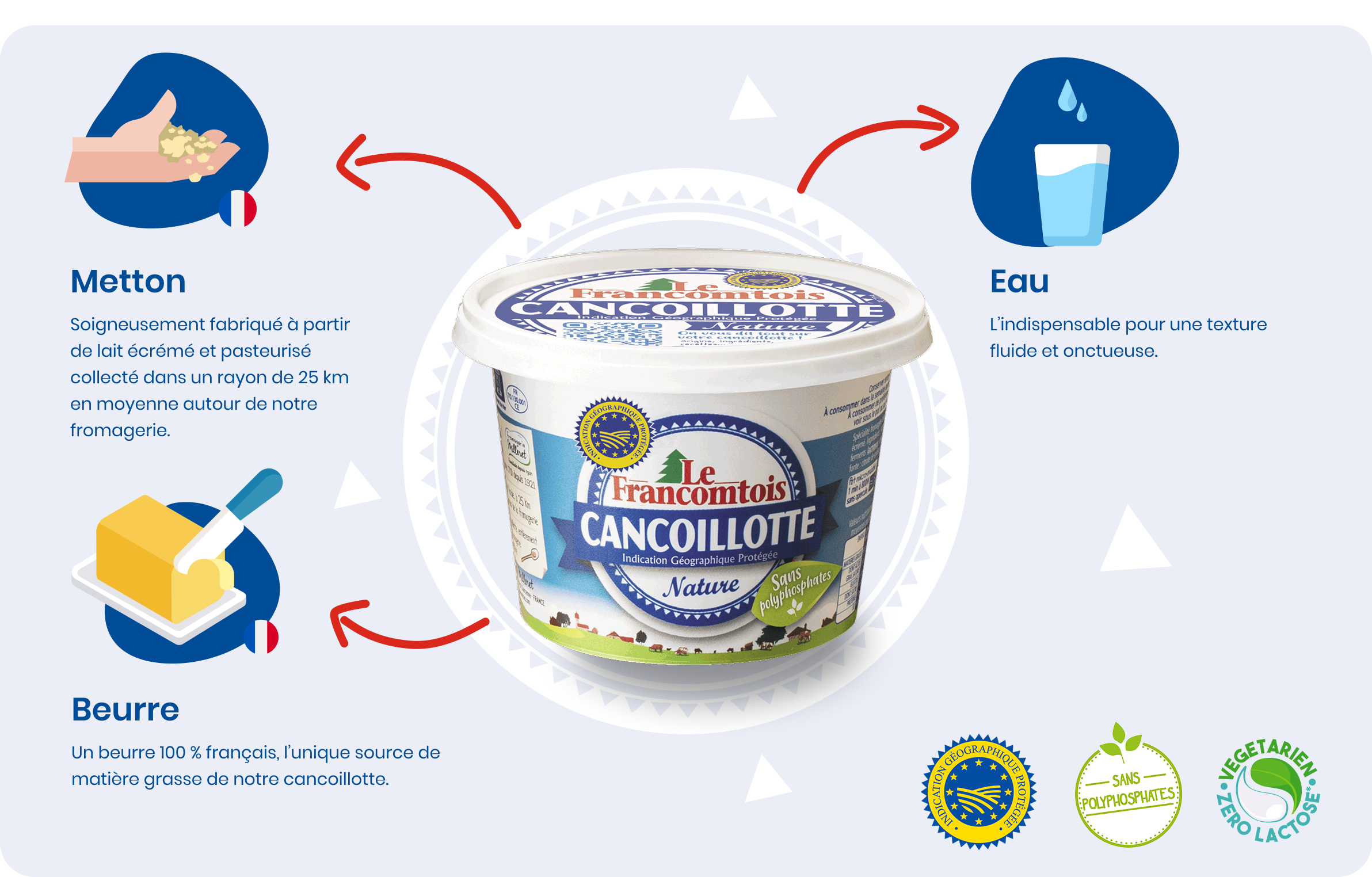 Une texture onctueuse et un goût traditionnellement typé, Le goût franc et comtois qui vous fera fondre de plaisir !